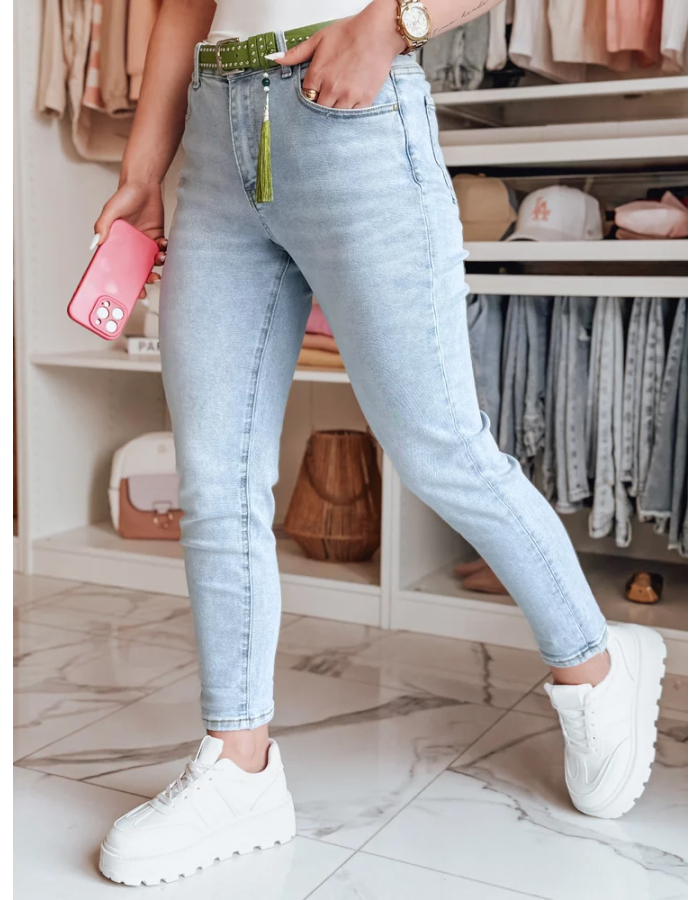 Damskie jeansy typu skinny z wysokim stanem to must-have każdej wiosennej garderoby. Model zapinany na klasyczny guzik i zamek, idealnie dopasowuje się do sylwetki, podkreślając kobiece kształty. W zestawie znajduje się dekoracyjny pasek z ozdobnym chwostem, który nadaje całości charakteru. Świetnie łączą się z T-shirtami, koszulami i trampkami.