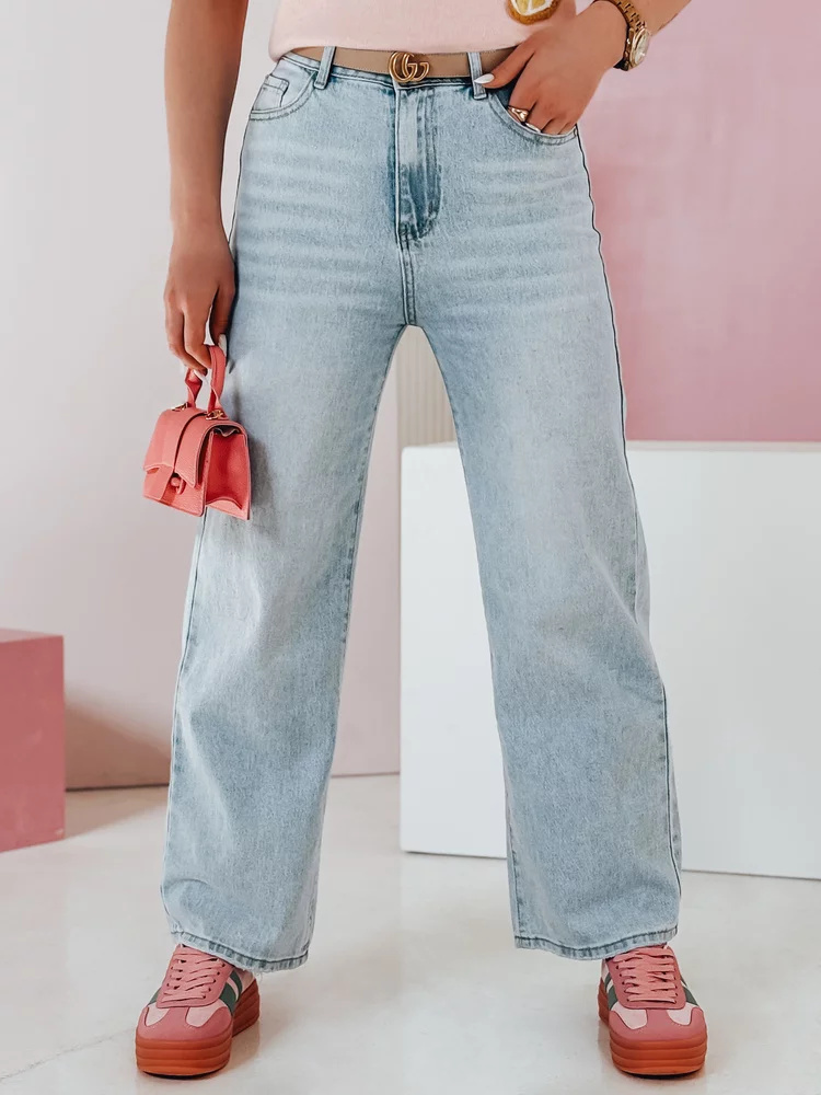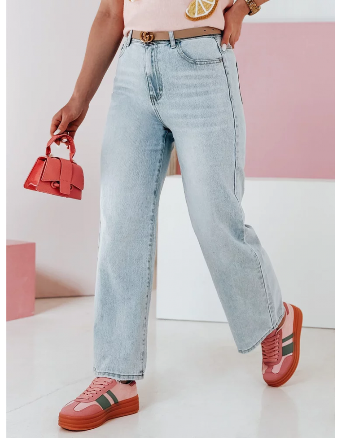 Klasyka w nowoczesnym wydaniu! Te jeansowe spodnie wide leg to idealne połączenie wygody i modnego stylu. Wysoki stan podkreśla sylwetkę i świetnie sprawdza się w zestawieniu z crop topami, dopasowanymi swetrami czy marynarkami. Klasyczne kieszenie oraz tradycyjne zapięcie na guzik i zamek zapewniają wygode, a szerokie nogawki dodają swobody. To idealna baza do casualowych stylizacji, które wpisują się w aktualne trendy.