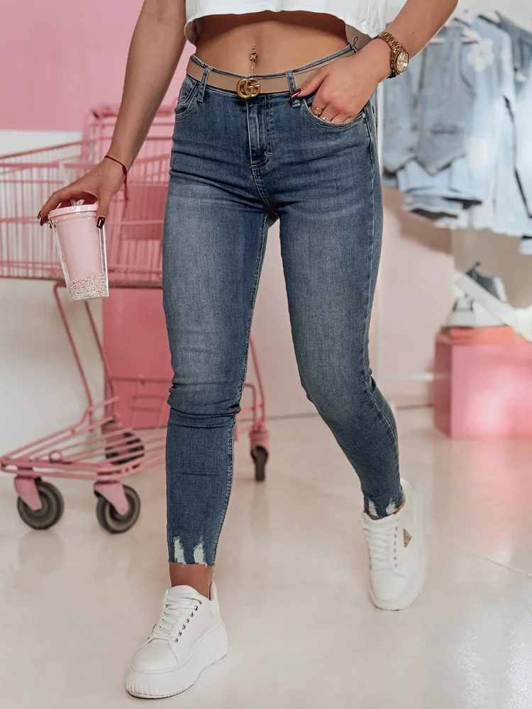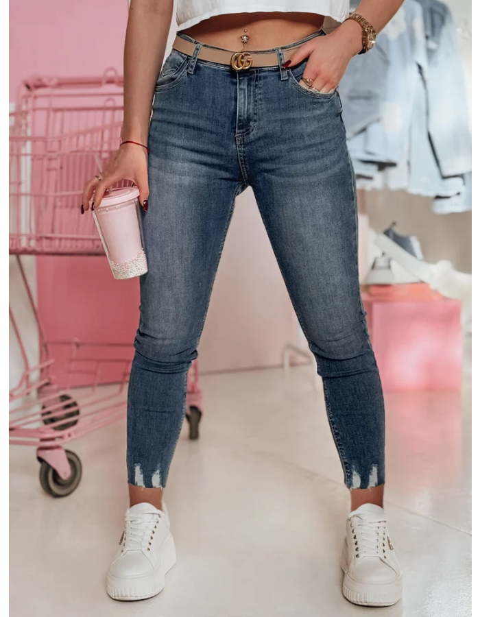 Stylowe jeansy skinny o średnim stanie i długości 7/8 to idealny wybór na każdą okazję. Dzięki ozdobnym kieszeniom i dopasowanemu fasonowi doskonale leżą na sylwetce oraz optycznie wydłuża nogi. Przetarcia na dole nogawek dodają im modowego charakteru. Świetnie wyglądają w połączeniu z basicowym t-shirtem i sportowym obuwiem. Idealne do casualowych stylizacji.