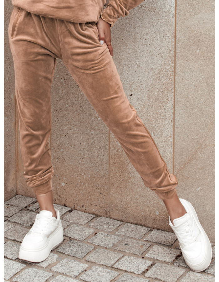 Spodnie damskie dresowe welurowe UY2834 beżowe
