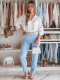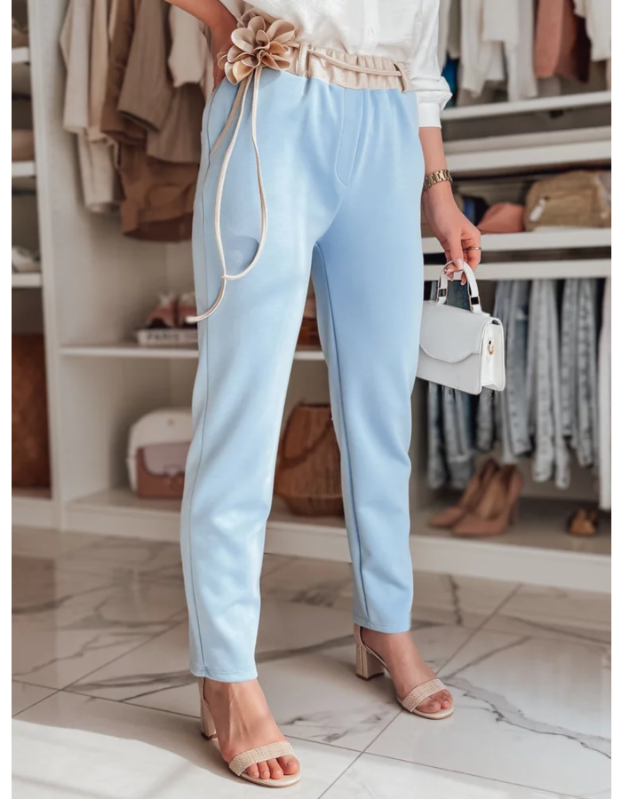 Spodnie damskie casualowe masełko z prostą nogawką to połączenie wygody i elegancji. Gumka w pasie zapewnia komfort noszenia, a ozdobny sznurek z kwiatami dodaje unikalnego charakteru. Klasyczne kieszenie podkreślają urok, a podwyższony stan pięknie modeluje sylwetkę. Idealne na codzienne stylizacje.