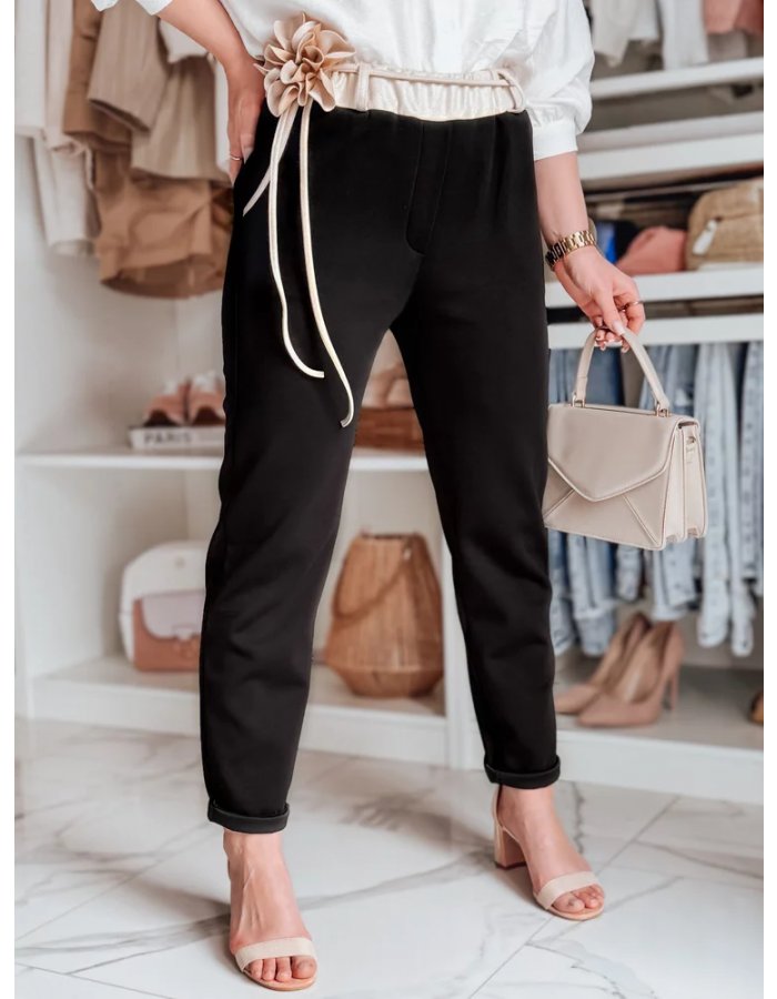 Spodnie damskie casualowe masełko z prostą nogawką to połączenie wygody i elegancji. Gumka w pasie zapewnia komfort noszenia, a ozdobny sznurek z kwiatami dodaje unikalnego charakteru. Klasyczne kieszenie podkreślają urok, a podwyższony stan pięknie modeluje sylwetkę. Idealne na codzienne stylizacje.