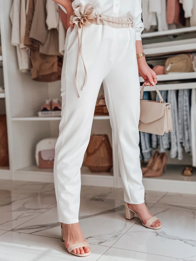 Spodnie damskie masełko casualowe z kwiatami LEGISSA ecru Dstreet UY2406 Uniwersalny