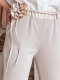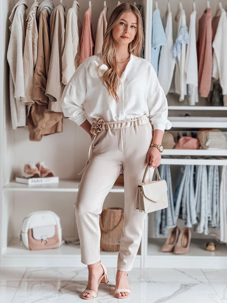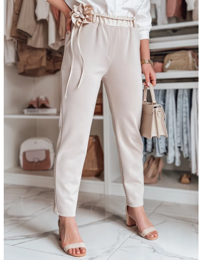 Spodnie damskie casualowe masełko z prostą nogawką to połączenie wygody i elegancji. Gumka w pasie zapewnia komfort noszenia, a ozdobny sznurek z kwiatami dodaje unikalnego charakteru. Klasyczne kieszenie podkreślają urok, a podwyższony stan pięknie modeluje sylwetkę. Idealne na codzienne stylizacje.