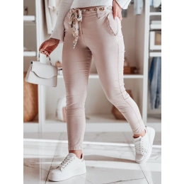 Spodnie damskie materiałowe chinosy z paskiem ROSSALI jasnoróżowe Dstreet UY2530 M