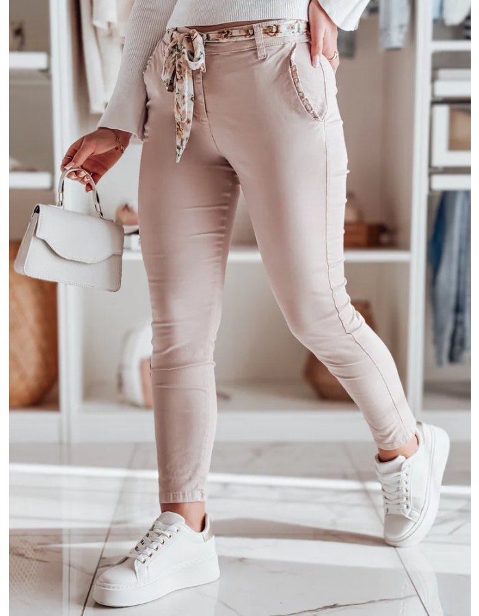 Spodnie damskie materiałowe chinosy z paskiem ROSSALI
