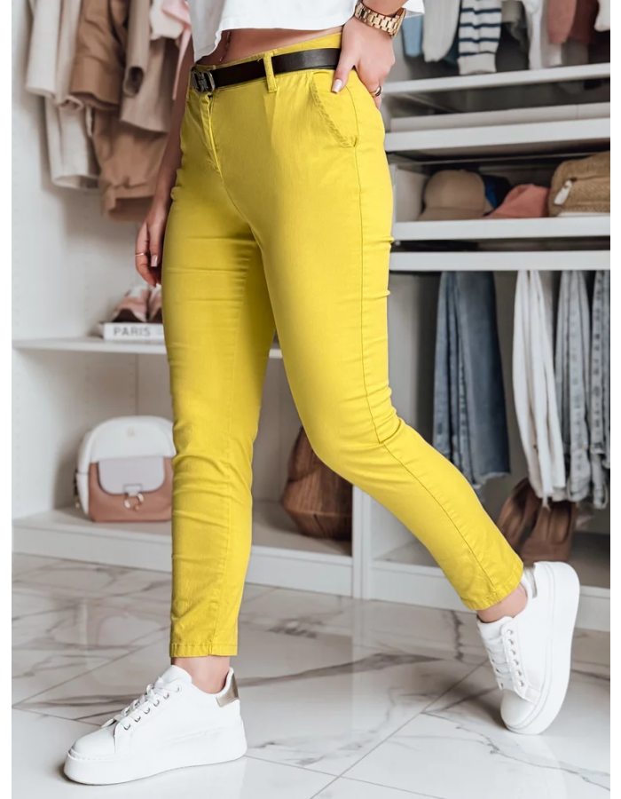 Spodnie damskie slim fit z paskiem LINESKA musztardowe Dstreet UY2579 M