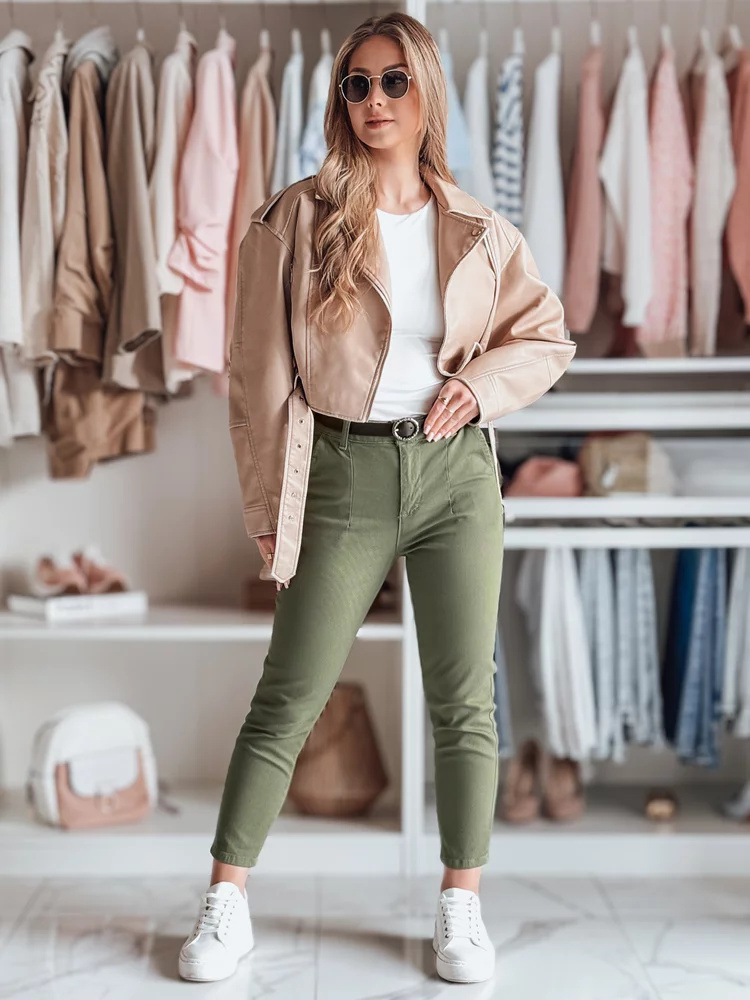 Spodnie damskie slim fit z paskiem TAIRONIK khaki Dstreet UY2547 M