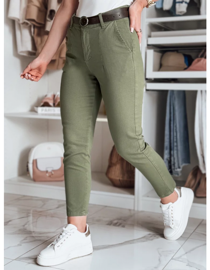 Spodnie damskie casualowe slim fit TAIRONIK z paskiem