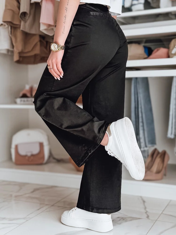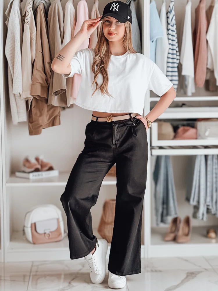 Spodnie wide leg z wysokim stanem to must-have w każdej garderobie. Dopasowana talia podkreśla sylwetkę, a rozszerzane nogawki optycznie wydłużają nogi. Zapinane na zamek i guzik, posiadają ozdobne kieszenie i urocze detale, które dodają im unikalnego charakteru. Bawełniane, lekkie spodnie to doskonała baza do codziennych stylizacji. Świetnie komponują się z casualowymi T-shirtami lub w mniej formalnych zestawach.