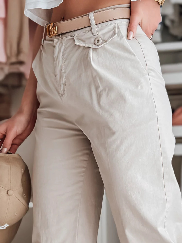 Spodnie wide leg z wysokim stanem to must-have w każdej garderobie. Dopasowana talia podkreśla sylwetkę, a rozszerzane nogawki optycznie wydłużają nogi. Zapinane na zamek i guzik, posiadają ozdobne kieszenie i urocze detale, które dodają im unikalnego charakteru. Bawełniane, lekkie spodnie to doskonała baza do codziennych stylizacji. Świetnie komponują się z casualowymi T-shirtami lub w mniej formalnych zestawach.