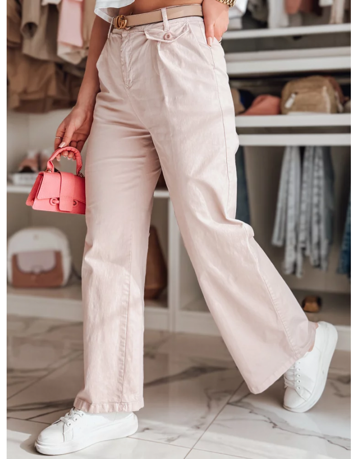 Spodnie wide leg z wysokim stanem to must-have w każdej garderobie. Dopasowana talia podkreśla sylwetkę, a rozszerzane nogawki optycznie wydłużają nogi. Zapinane na zamek i guzik, posiadają ozdobne kieszenie i urocze detale, które dodają im unikalnego charakteru. Bawełniane, lekkie spodnie to doskonała baza do codziennych stylizacji. Świetnie komponują się z casualowymi T-shirtami lub w mniej formalnych zestawach.