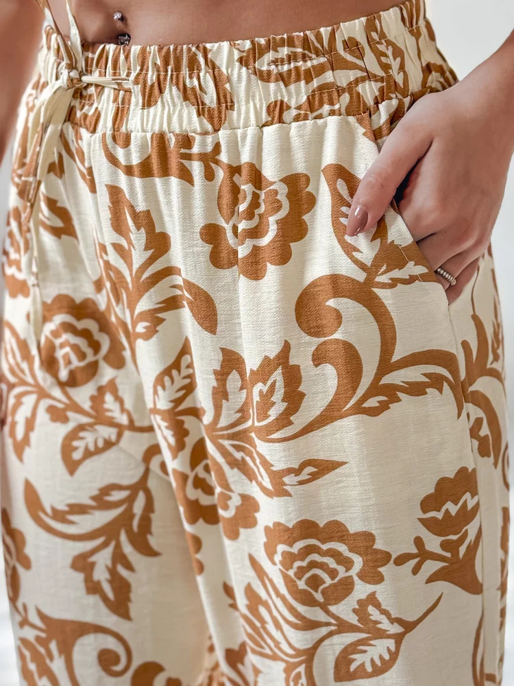 Spodnie damskie wide leg w kwiaty LOVEGARDEN kamelowe Dstreet UY2657 M