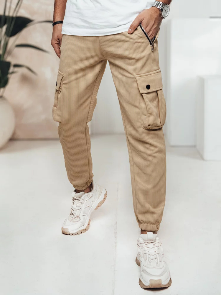 Lekko dopasowane spodnie typu cargo to połączenie nowoczesności i stylu. Wyposażone w ozdobne kieszenie zapinane na zatrzaski i suwaki, zapewniają wygodę. Model ten posiada wiązany pas oraz ściągacze na końcu nogawek. Idealne na co dzień, doskonale komponują się z luźnymi stylizacjami.