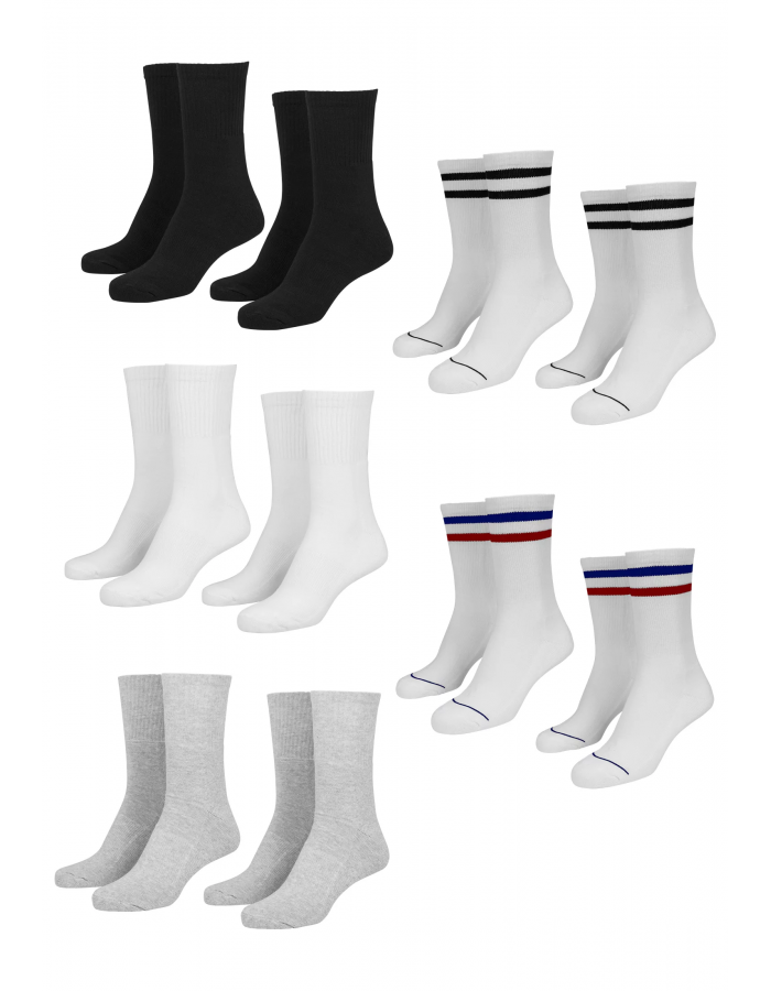 Jak známo, funkčních ponožek není nikdy dost. To je také důvod, proč toto hodnotné balení obsahuje deset párů punčoch v různých barvách a jednoduchém designu – pro každodenní život i sport. Šest párů pohodlných punčoch je jednobarevné. Další čtyři páry jsou v bílé barvě se dvěma vodorovnými pruhy na žebrovaných manžetách. Ponožky jsou vyrobeny z jemně vyladěné směsi bavlny a spandexu a nabízejí solidní pohodlí při nošení. Deset věrných společníků na každý den.