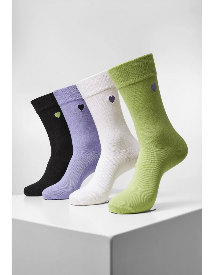 Ukaž srdce pro punčochy! Tyto modely pro radost na nohy jsou střiženy do výše lýtek a jsou dodávány v barevných baleních po čtyřech. Všechny mají malé, barevně zvýrazněné motivy srdce po stranách manžet a položebrovaných dříků. Nabízejí nebeský komfort nošení a jsou protiskluzové.