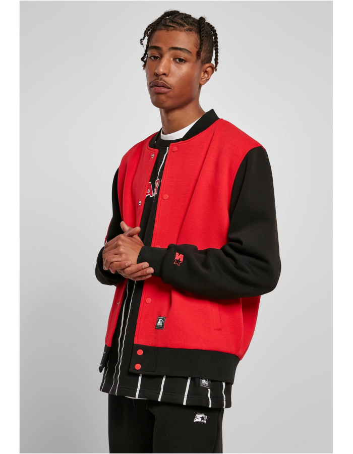 Promyšleně navržený kousek městské módy pro muže – tato pánská vysokoškolská bunda značky Starter přitahuje pozornost díky svému vysoce kontrastnímu barevnému provedení. Bunda je tradičně vybavena légou na druky a širokými manžetami na rukávech a spodním lemu. Dvě boční kapsy a ležérní oversize střih poskytují pohodlí a praktičnost. Ústředním designovým prvkem je propracovaná aplikace Starter, která pokrývá celá záda a je vylepšena plstěnými prvky. Aplikace se skládá z čísla 71 a slov „Hledej hvězdu“. Použitý styl se opakuje jako velké „S“ na pravém rukávu. Značku doplňuje malá výšivka Starter na levém rukávu a tkaný štítek na přední straně. Pánské vysokoškolské sako je vyrobeno z bavlny, polyesteru, elastanu a taftu (polyester).