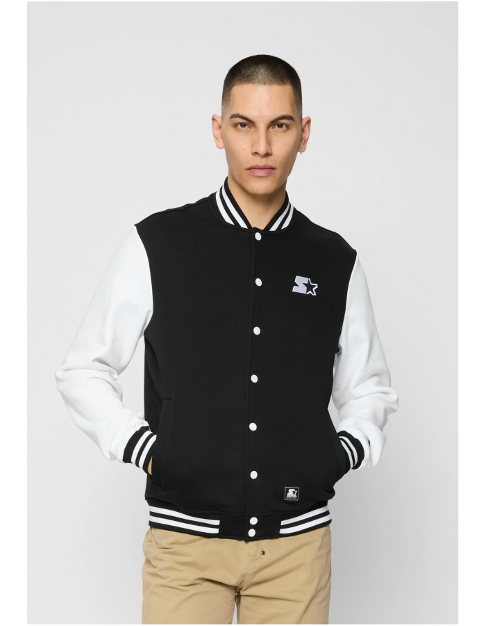 Tato vysokoškolská bunda v trendy volném střihu nabízí typické vysokoškolské pruhované prvky s kontrastními rukávy a knoflíky. Elastické manžety na rukávech a lemu, stejně jako límec, jsou dvouproužkové. Dvě boční kapsy jsou připraveny k odložení. Styl pánské univerzitní bundy je zakončen chytrou značkou Starter: dvě výšivky loga na hrudi a rukávech. Zvolený materiál je extrémně pohodlný na nošení napůl česaný fleece.
