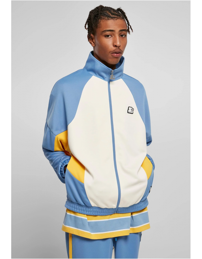 Tato důmyslně navržená tepláková bunda pro muže se vyznačuje úspěšným barevným blokem, který vytváří autentický styl. Sportovní bunda je volného střihu se širokými spadlými rameny, stojáčkem, elastickým lemem a elastickými manžetami. Samozřejmostí jsou i boční kapsy. Styl je definován barevnými vsadkami na bocích, vpředu a vzadu. Pěkný detail: přední zip používá ramínko na zip v designu Starter. Bunda je navíc označena gumovou nášivkou Starter na levé straně hrudi, která se opakuje jako výšivka na levém rukávu a jako tkané logo na levé kapse. Propracovaný branding doplňuje Starter šipka u krku. Konečně je tepláková bunda vyrobena z pohodlného polyesterového trikotu.