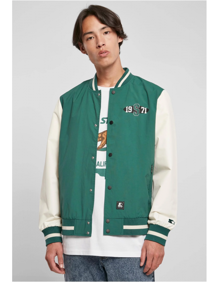 Okořeňte svůj vzhled touto městskou univerzitní bundou s potisky a výšivkami na hrudi a zádech. Tato bunda od Starter, vyrobená z vysoce kvalitních materiálů, jako je nylonový taslan a s klasickým vysokoškolským žebrováním, bude sloužit jako váš oblíbený kousek oblečení na dlouhou dobu. Nošení naší bundy nebude nic méně než pohodlného díky volnému střihu a měkkým materiálům. Užijte si další praktické detaily, jako jsou kapsy na zip a zapínání na patentky, a vylepšete svůj šatník naší univerzitní bundou.