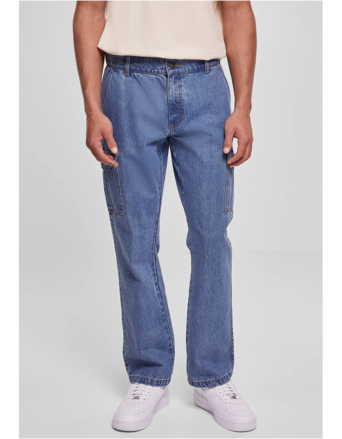 Pánské cargo džíny zdařilým způsobem kombinují cargo kalhoty a džíny. Nabízejí rovné nohavice s cargo kapsami a také dvě klopové kapsy s kovovými knoflíky vzadu. Styl doplňují další boční kapsy a poutka na opasek. Kalhoty mají také zip s logem a jsou vyrobeny z robustní bavlněné džínoviny. Jsou pohodlného volného střihu.