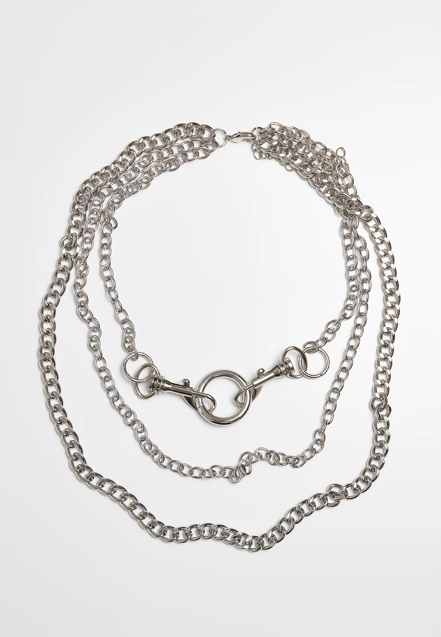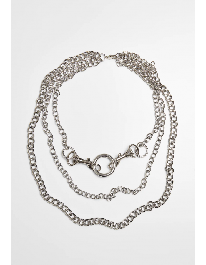 Se dvěma integrovanými karabinami, které drží na vnitřním kroužku, vytváří tento tří řetízkový náhrdelník úspěšné módní akcenty. Vnitřní řada má tvar kotevního řetězu, střední a vnější řada jsou obrubníkové. Moderní šperk Urban Classics je vyroben z ušlechtilého železa a přichází jako univerzální velikost.