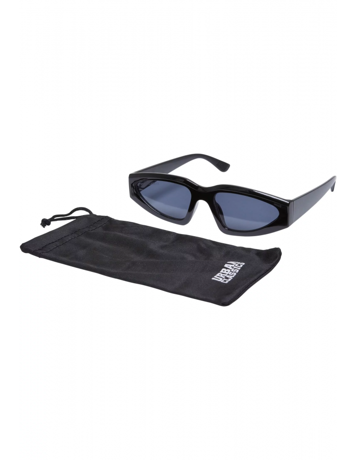 Lehce trojúhelníkové, tónované čočky slunečních brýlí ladí s hranatým rámem s rovnými širokými stranicemi. Brýle jsou vybaveny UV 400 ochranou a jsou vyrobeny z polykarbonátu a mědi. Zahrnují ochranný kryt se stahovací šňůrkou a nápisem loga Urban Classics.