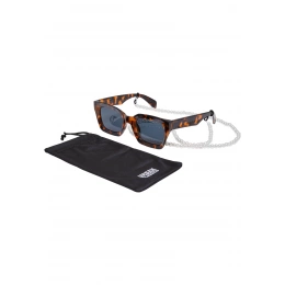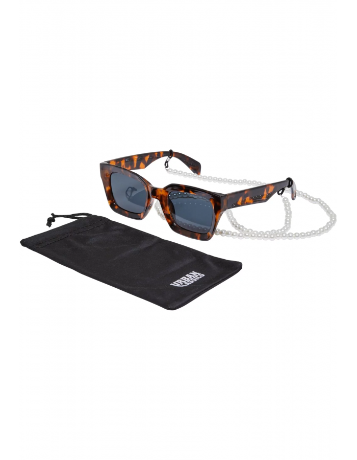 Hranatý rám a čočky a výrazná část obočí promění tyto sluneční brýle Urban Classics v elegantní a moderní doplněk, který doplňuje bílý perlový řetízek. Široké zkosené strany a pevná ochrana očí UV 400 doplňují sluneční brýle. Jsou vyrobeny z polykarbonátu a skla.