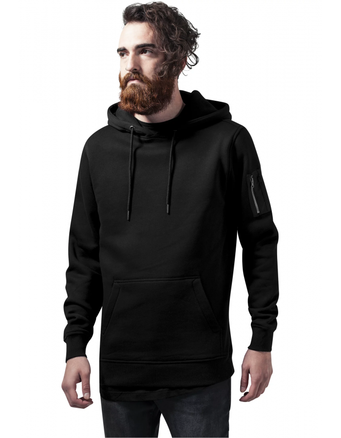 Klasická mikina s kapucí s klokaní kapsou z měkkého potu je doplněna kapsou na bomber z nylonu a překříženým límcem. Mikina Sweat Bomber Hoody od URBAN CLASSCIS nesmí chybět.
