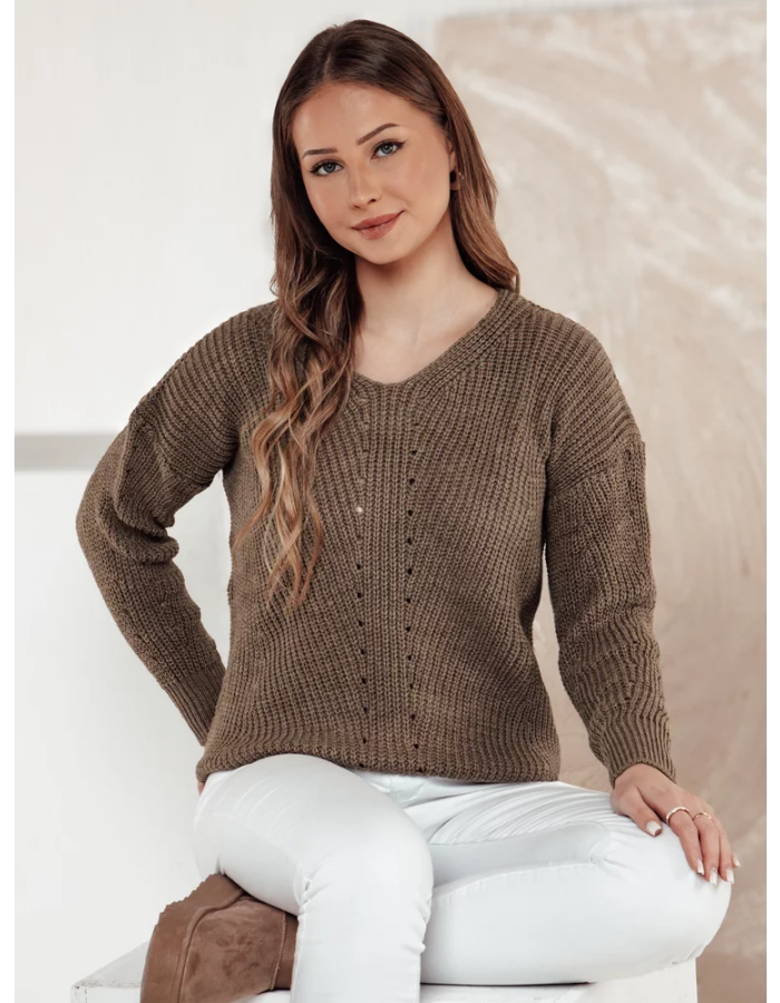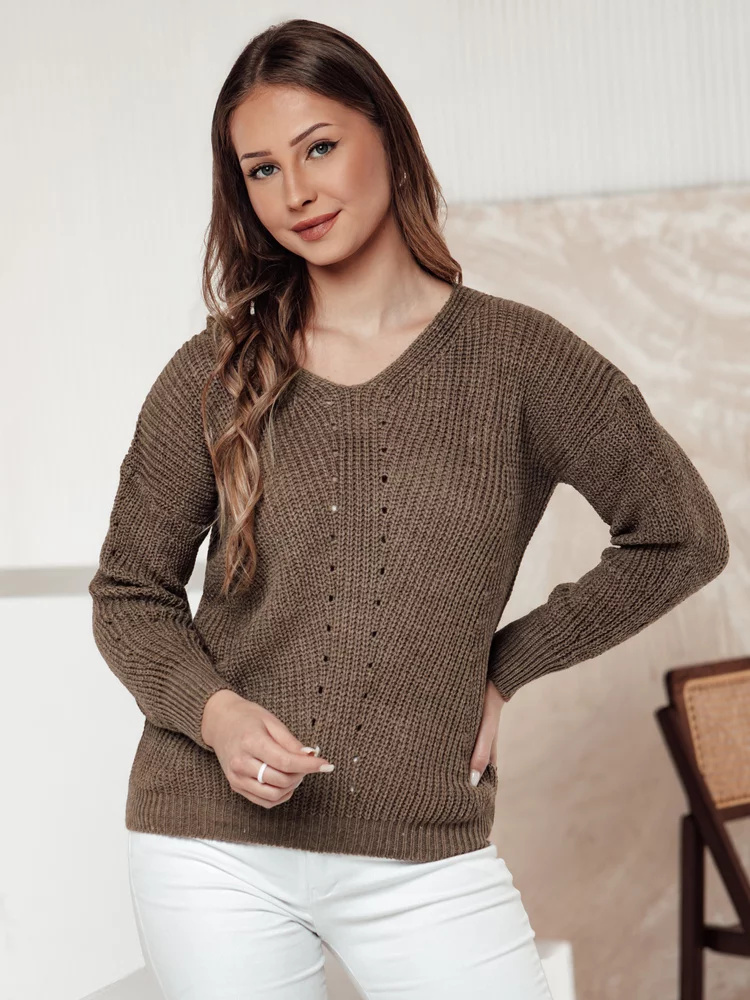 Stylowy sweter o prostym kroju, który łączy klasykę z wygodą. Miękki materiał i subtelny wzór gwarantują komfort noszenia, a dekolt w kształcie V dodaje mu elegancji. Idealny do różnych stylizacji, zarówno casualowych, jak i bardziej formalnych.