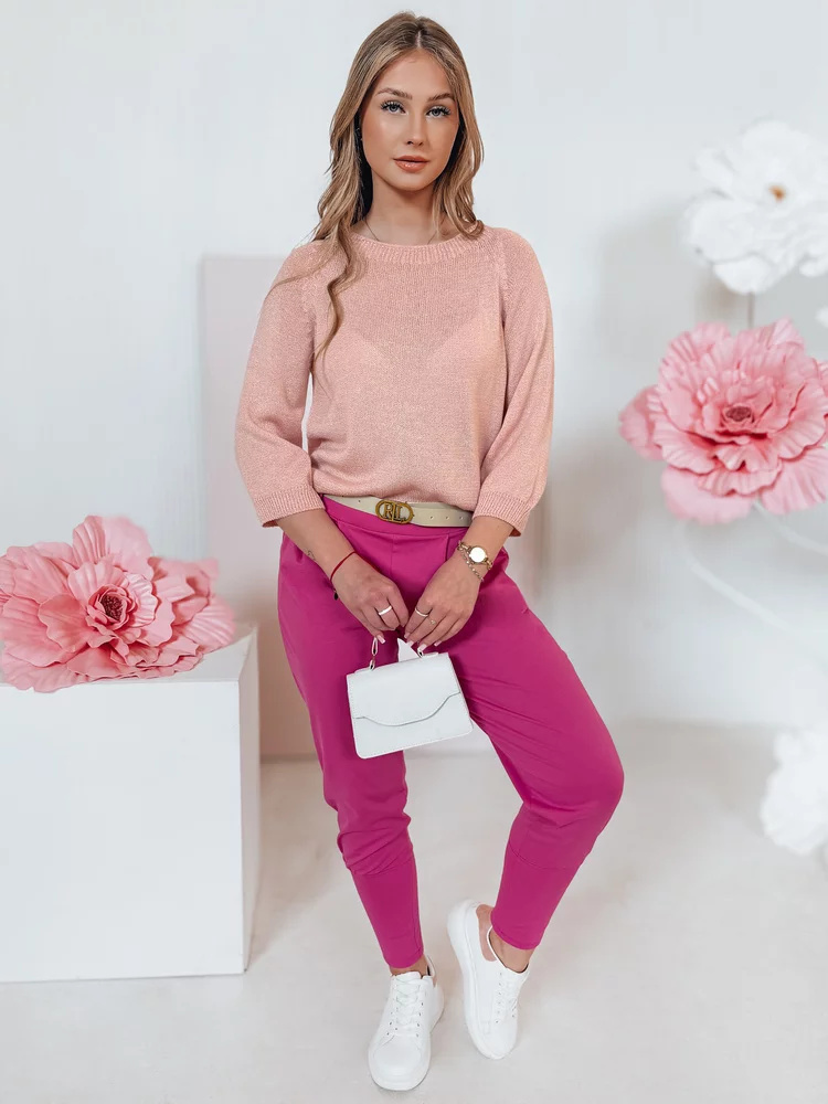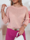 Damski sweter one size o luźnym, oversizowym kroju. Model z okrągłym dekoltem i rękawami 3/4 to doskonały wybór na co dzień. Ściągacze na dole i przy rękawach dbają o idealne dopasowanie. Klasyczny fason sprawia, że świetnie komponuje się zarówno z jeansami, jak i spódnicami. Idealny na cieplejsze dni.