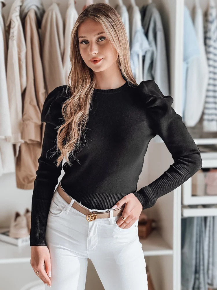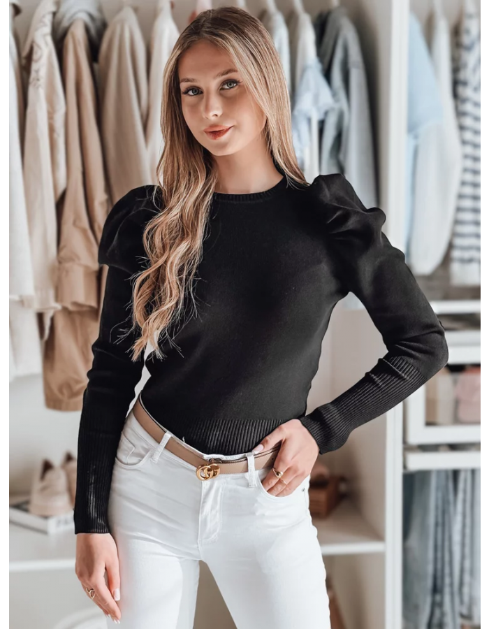 Elegancki sweter damski z bufkami na ramionach, który przyciąga uwagę swoim subtelnym designem. Uniwersalny rozmiar pasuje od XS do L. Dopasowane ściągacze na rękawach oraz dole podkreślają sylwetkę, a miękka tkanina gwarantuje wygodę przez cały dzień. Idealny wybór na chłodniejsze dni – świetnie sprawdzi się w casualowych i eleganckich stylizacjach.