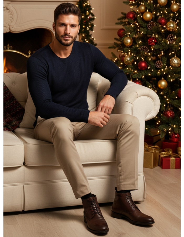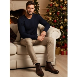 Elegancki męski sweter z delikatną teksturą, doskonały na chłodniejsze dni. Wykonany z wysokiej jakości dzianiny, zapewnia komfort i trwałość. Dopasowany krój świetnie podkreśla sylwetkę, a uniwersalny design sprawia, że pasuje zarówno do codziennych, jak i bardziej formalnych stylizacji.