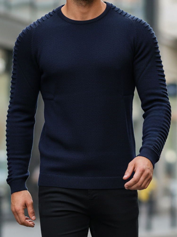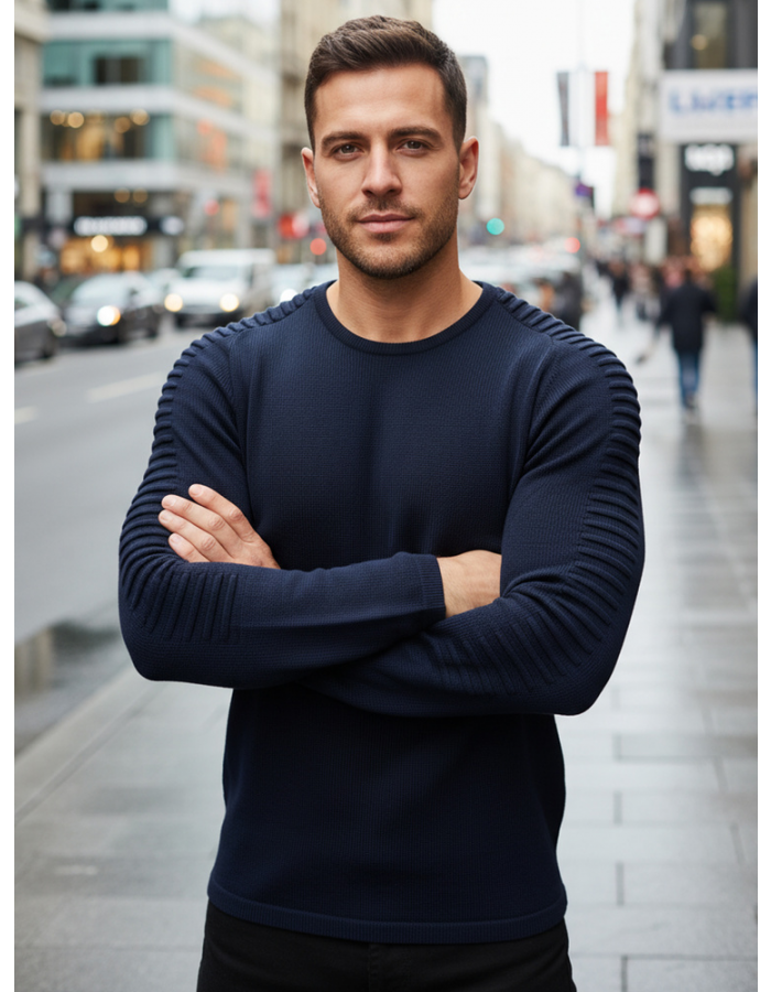 Klasyczny sweter męski, który łączy ponadczasowy styl z wygodą. Wykonany z przyjemnego w dotyku materiału, zapewnia komfort noszenia na co dzień. Subtelny wzór na rękawach nadaje mu nowoczesny charakter, a uniwersalny fason sprawdzi się zarówno w casualowych, jak i bardziej formalnych stylizacjach.