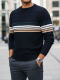 Sweter męski w paski z okrągłym dekoltem WX2325 niebieski