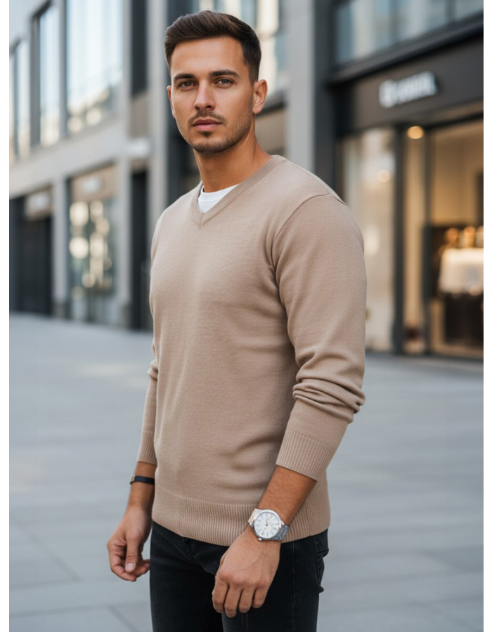 Swetry męskie z dekoltem w serek WX2318 kamelowy