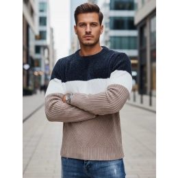 Sweter męski z okrągłym dekoltem WX2321 granatowo-beżowy