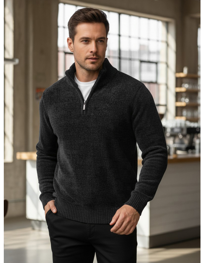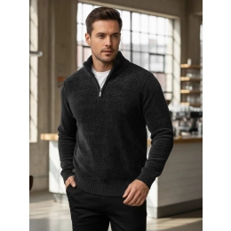 Sweter o klasycznej formie z praktyczną stójką zapinaną na zamek sprawdza się zarówno w codziennych, jak i bardziej eleganckich zestawieniach. Miękka dzianina zapewnia komfort noszenia przez cały dzień. Uniwersalny fason ułatwia łączenie go z jeansami lub spodniami materiałowymi.