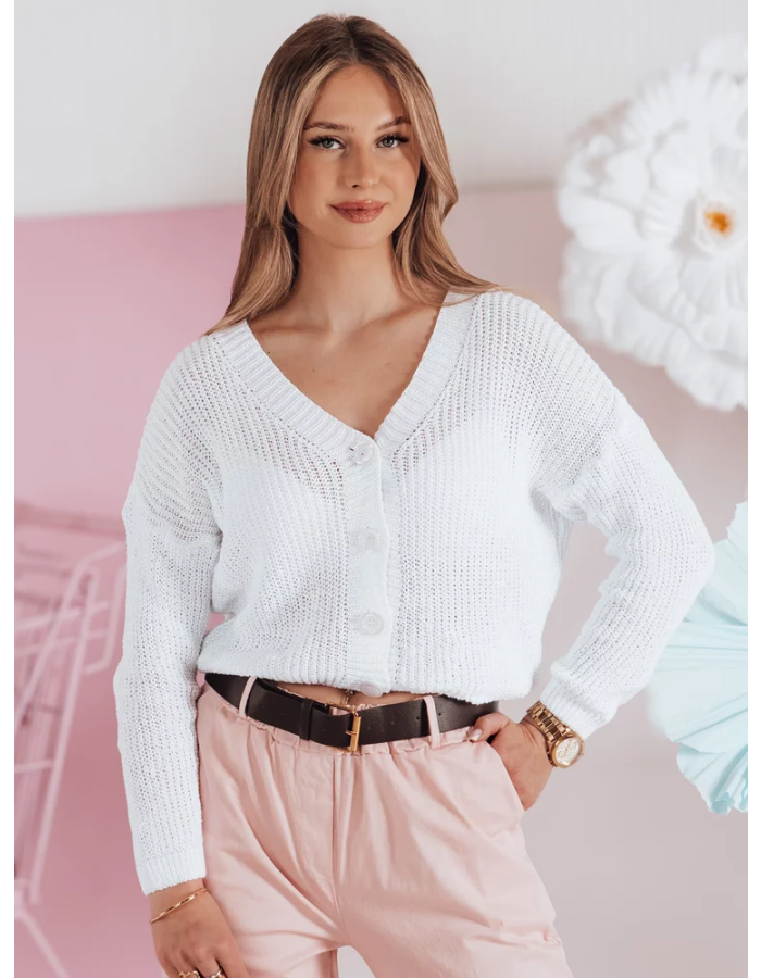 Swter damskie one size oversize prążkowany SWEETDREAM biały Dstreet MY2459 Uniwersalny