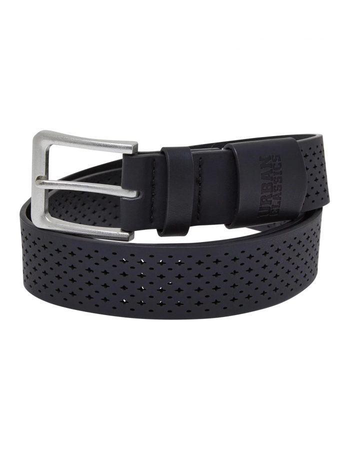 Široký, perforovaný pásek, který sebevědomě vylepší každý městský outfit. Je vyrobena z polyesteru a je důsledně děrována s úhledným otvorem a křížovou strukturou. Pásek se zapíná na čtvercovou sponu a je označen vyraženým nápisem Urban Classics. Je k dispozici ve dvou různých délkách. S/M: 105 cm, L/XL: 125 cm
