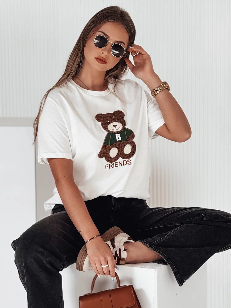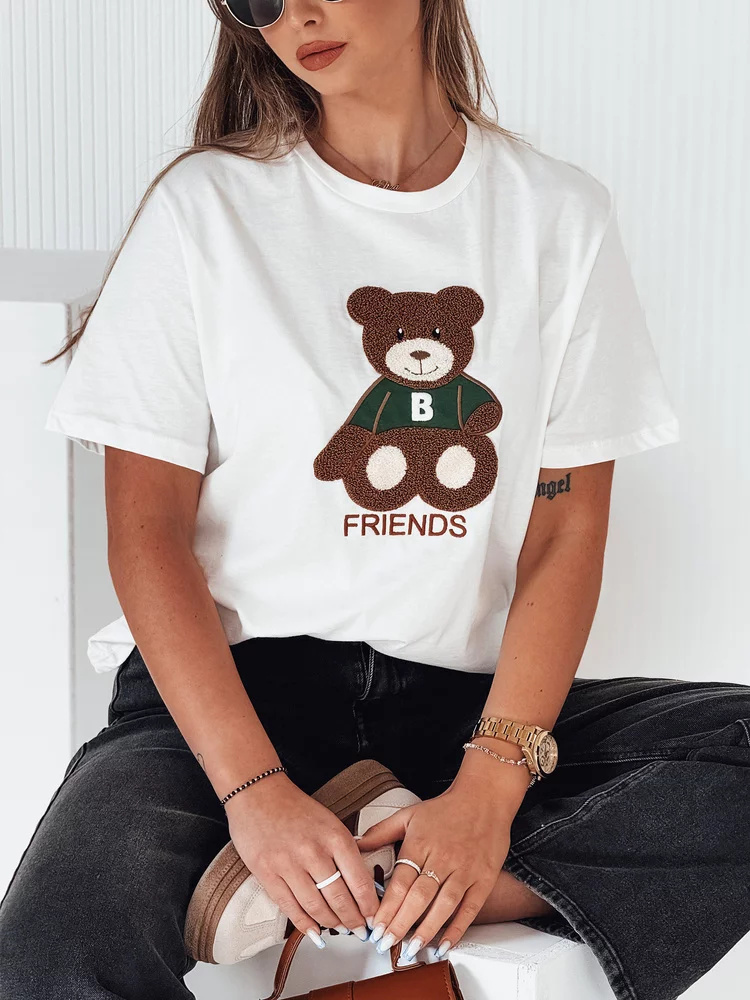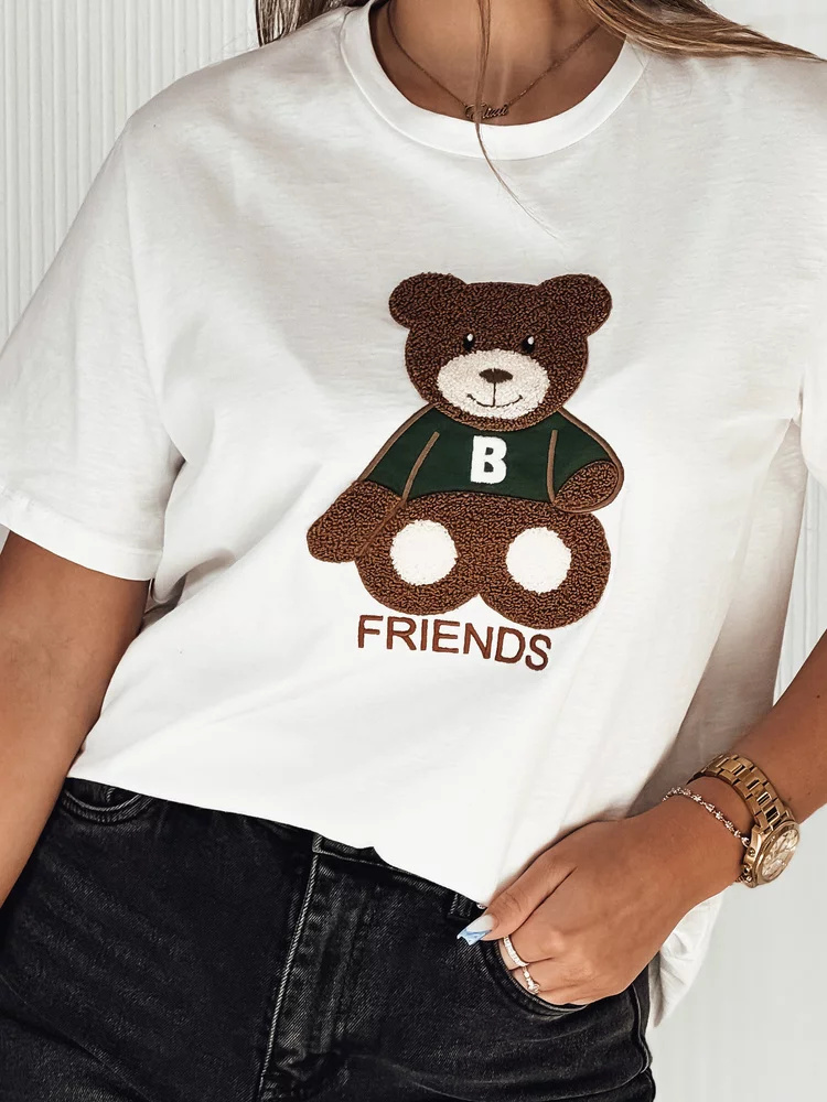 Czy może być coś słodszego niż t-shirt z aplikacją przyjaznego misia? T-shirt BAREN to doskonała propozycja dla osób, które cenią sobie połączenie klasyki z wyjątkowymi detalami. Miękka aplikacja w kształcie misia dodaje tej koszulce uroku, a jej basicowy fason pasuje do wielu różnych zestawów. Doskonale uzupełni casualowy look, nadając mu przyjazny i modny charakter. Wybierz t-shirt BAREN, aby każdy Twój dzień był wypełniony uśmiechem i stylem.