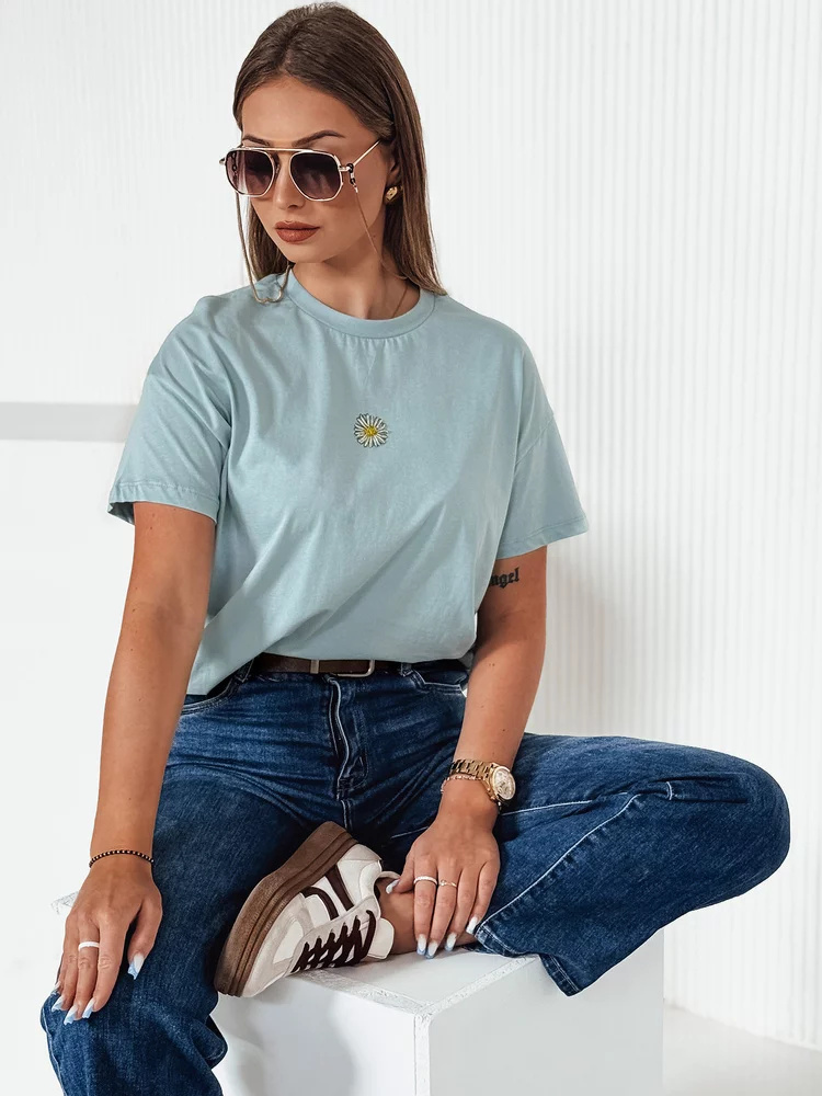 Ciesz się wygodą i stylem każdego dnia dzięki basicowemu T-shirtowi z nadrukiem kwiatka. Ten niezwykle uniwersalny element garderoby został wzbogacony o mały, ale wyjątkowy detal, który przyciąga uwagę i dodaje uroku. Idealnie sprawdzi się w każdej sytuacji, od casualowego spotkania z przyjaciółmi, po bardziej oficjalne okazje.