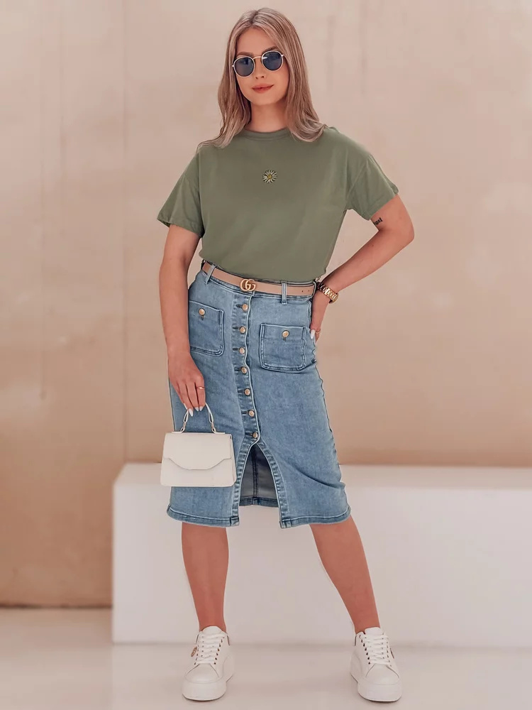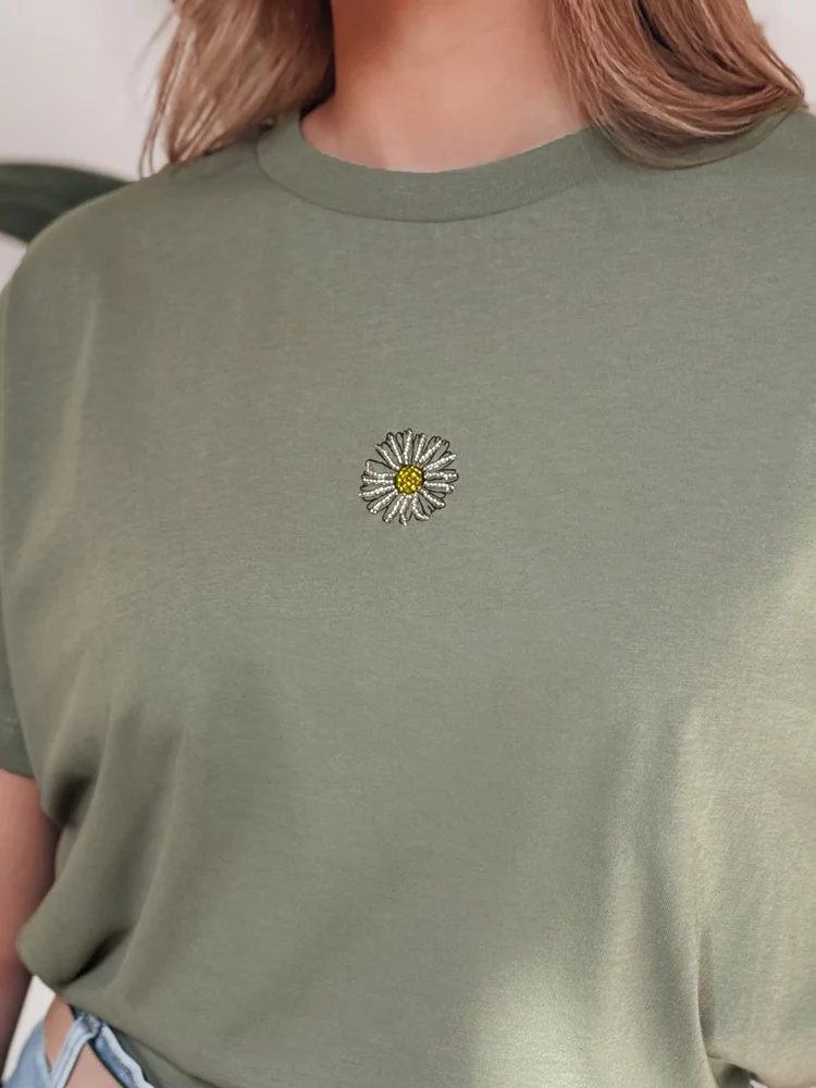 Ciesz się wygodą i stylem każdego dnia dzięki basicowemu T-shirtowi z nadrukiem kwiatka. Ten niezwykle uniwersalny element garderoby został wzbogacony o mały, ale wyjątkowy detal, który przyciąga uwagę i dodaje uroku. Idealnie sprawdzi się w każdej sytuacji, od casualowego spotkania z przyjaciółmi, po bardziej oficjalne okazje.
