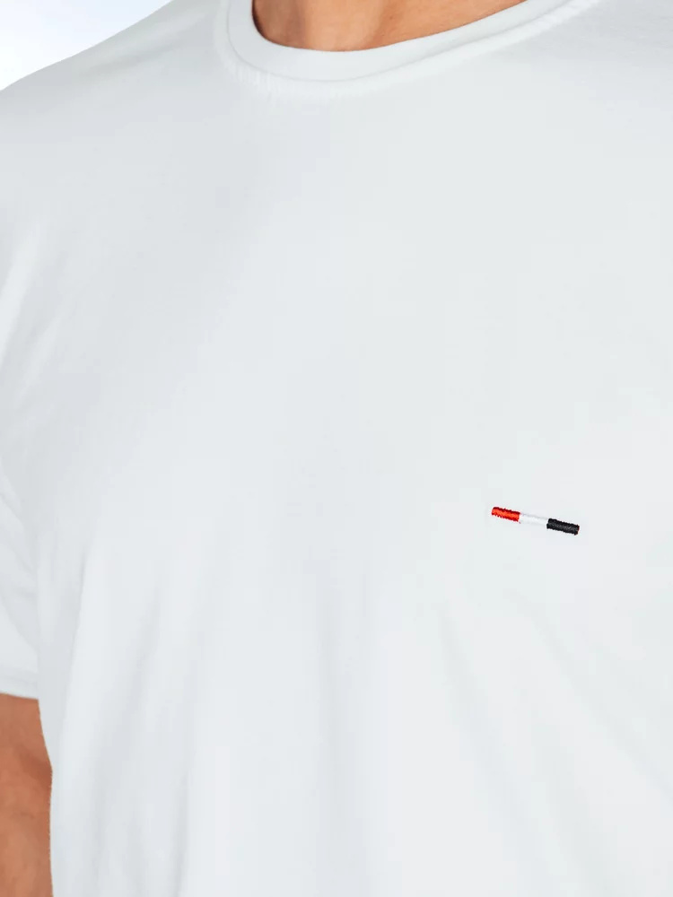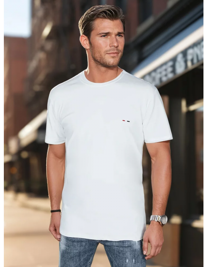 Minimalistyczny T-shirt męski z subtelnym haftem na piersi. Klasyczny krój i okrągły dekolt zapewniają uniwersalność, pasując zarówno do casualowych, jak i bardziej eleganckich stylizacji. Świetna baza do wielu outfitów – załóż go do jeansów lub pod marynarkę, by uzyskać stylowy efekt.