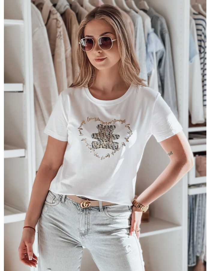 T-shirt damski z misiem TEDDYCAP biały Dstreet RY2745 S