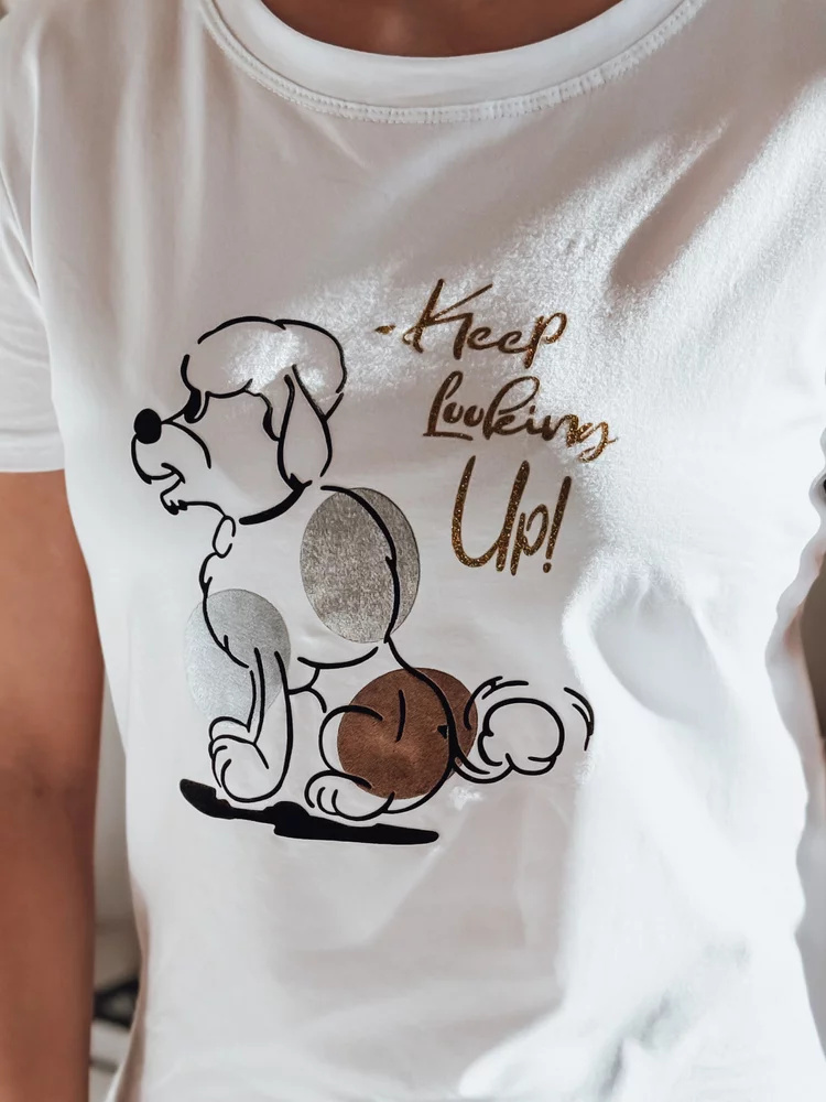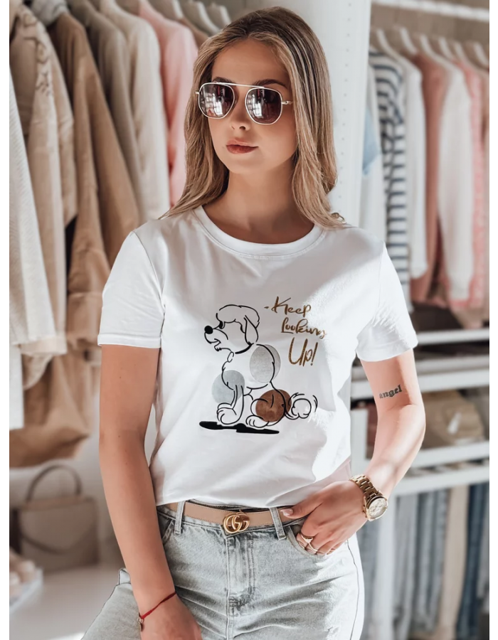 T-shirt damski z pudlem LUMIFITU biały Dstreet RY2738 S