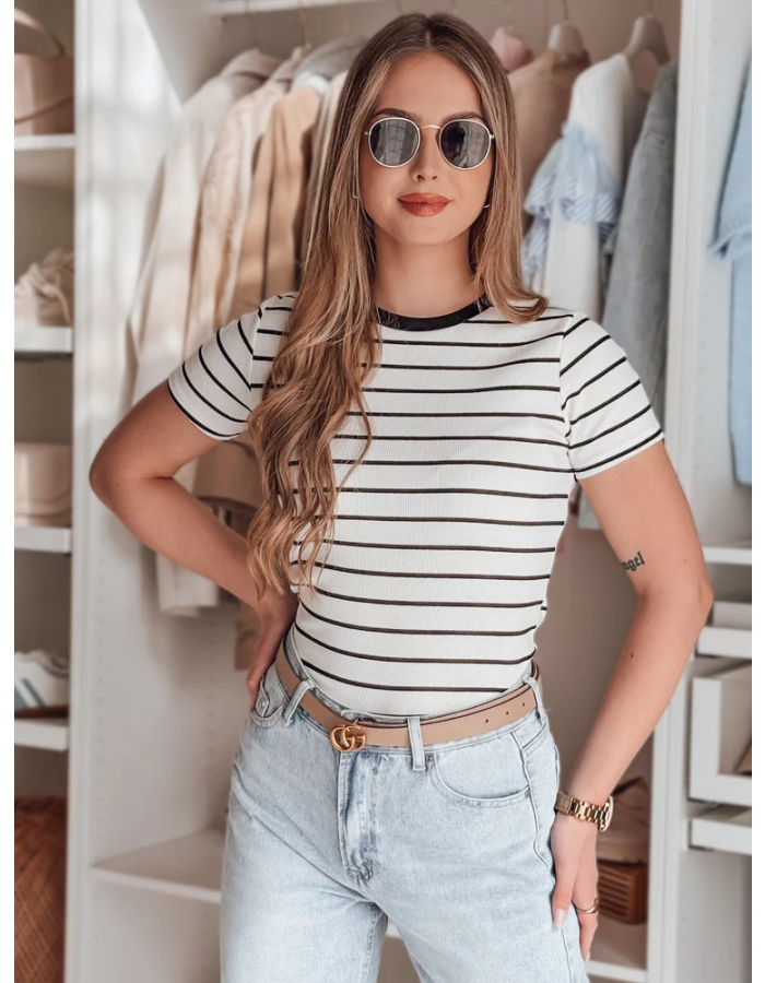 T-shirt damski basic w paski LINESS ry2818 biały