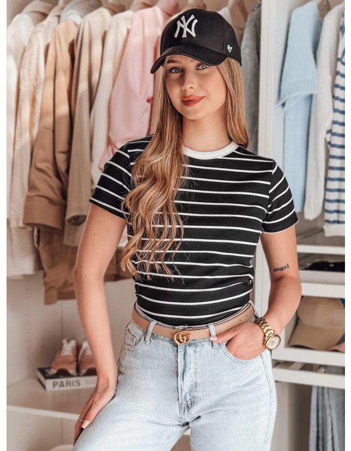 T-shirt damski basic w paski LINESS ry2817 czarny