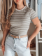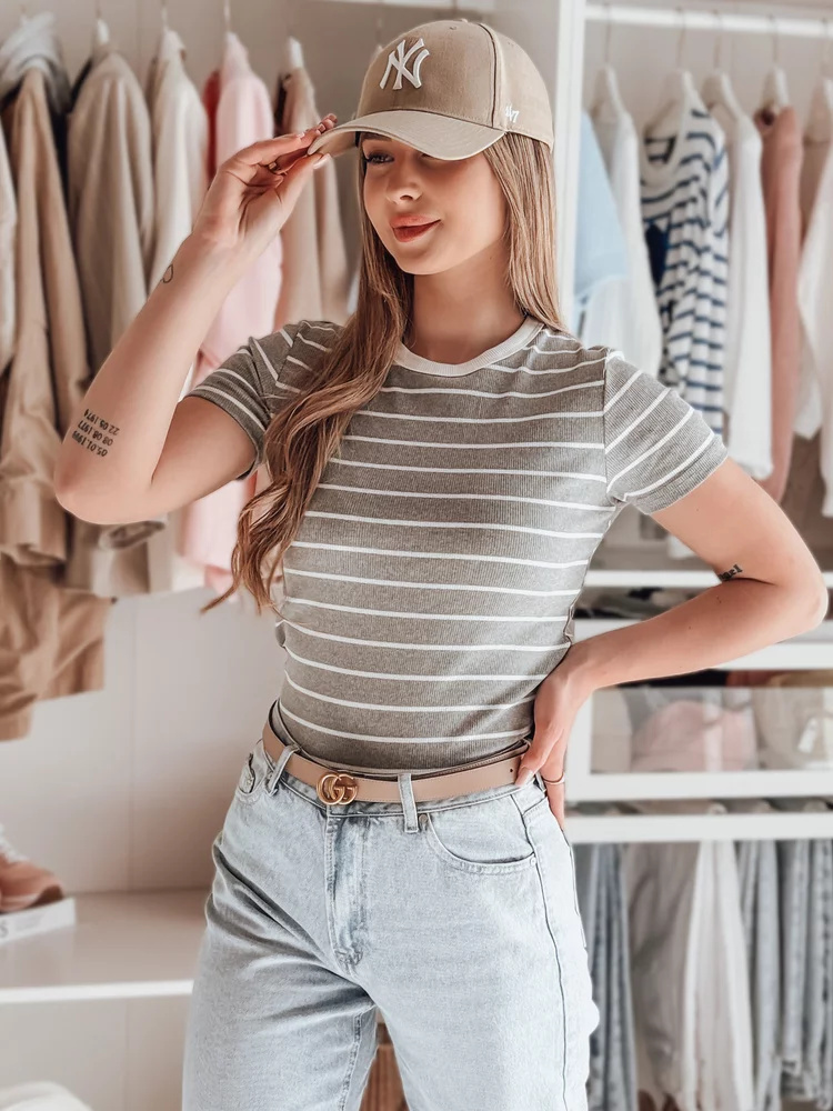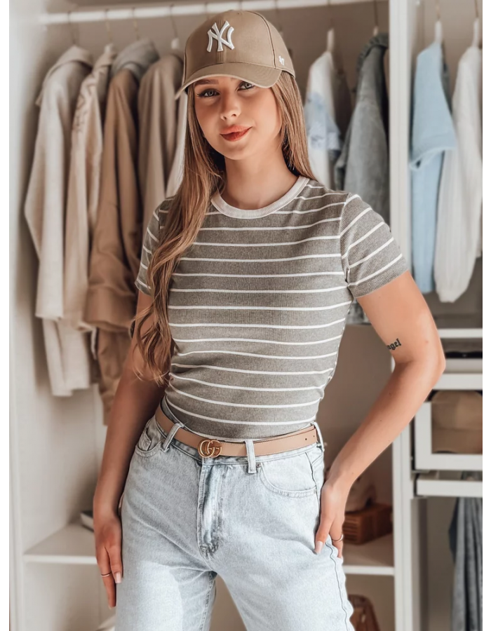T-shirt damski o klasycznym kroju, zaprojektowany z myślą o codziennym komforcie i uniwersalnym zastosowaniu. Prążkowana dzianina dobrze dopasowuje się do sylwetki, zachowując swobodę ruchów. Prosty fason sprawia, że koszulka łatwo wpisuje się w różne stylizacje. Model stanowi funkcjonalną bazę do codziennych zestawów.