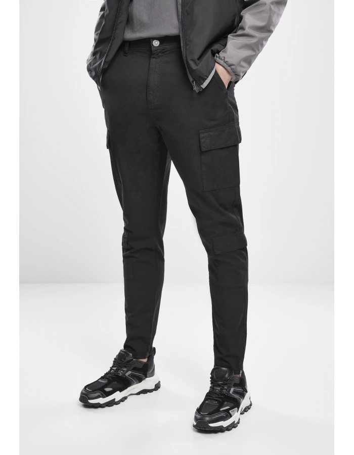 Tyto elegantní cargo kalhoty padnou a nosí se jako druhá kůže. Nohy jsou vybaveny celkem čtyřmi kapsami, dvěma na stehnech a dalšími dvěma pod koleny. Takto připravené nezůstanou pozadu žádné podstatné věci. Módní zipy na manžetách nohavic a šev tvarující postavu na zádech zajišťují výrazný styl, zatímco dvě zadní kapsy dovedně doplňují trendy kalhot.